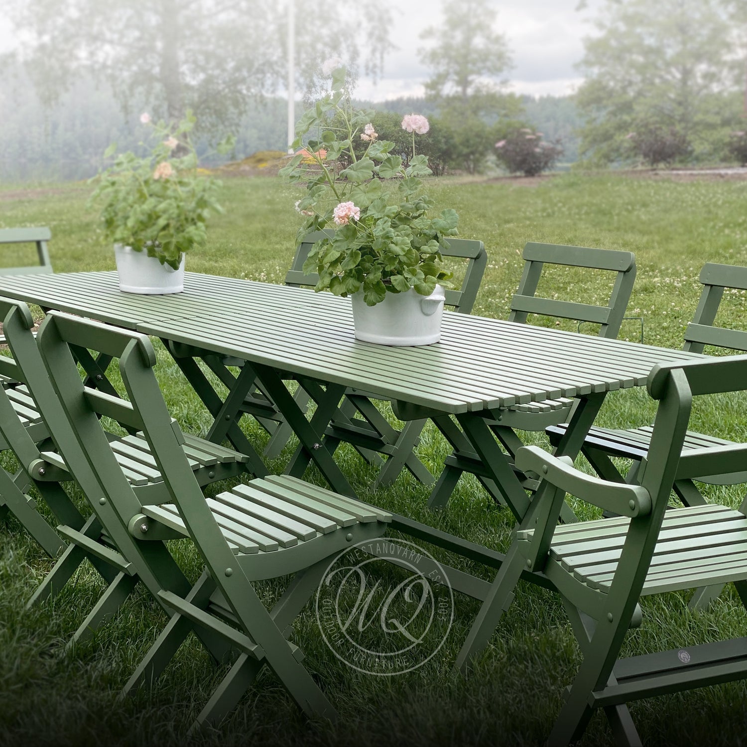 Solbacka is a high quality classic outdoor furniture collection with roots in the Scandinavian tradition. The furniture are locally crafted of premium twig free Nordic pine and treated with sustainable linseed oil paint that breathes, making maintenance easy and allowing the furniture to last for generations. The ergonomically optimized design guarantees high sitting comfort. The foldability facilitates transport and storing. Bolts and screws are made of stainless/A4 steel. Read more of maintenance…